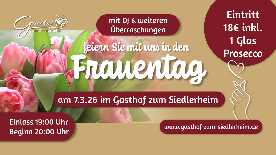 Wir laden Euch herzlich zu unserer Frauentagsparty im Gasthof zum Siedlerheim ein!