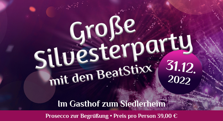 Wir wollen die letzte Nacht des Jahres mit euch im Gasthof zum Siedlerheim feiern!