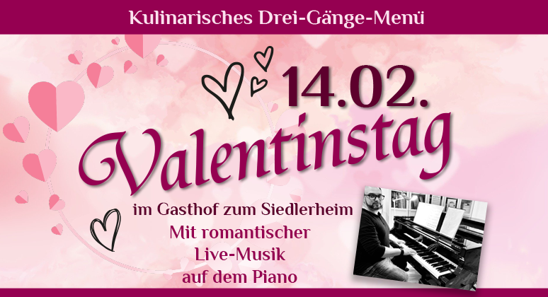 Zum diesjährigen Valentinstag erwartet Euch ein 3-Gänge-Menü mit kulinarischen Köstlichkeiten und romantischer Live-Musik auf dem Piano.